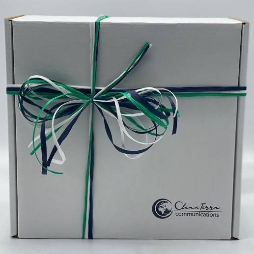 Each gift is packed in a white branded box and wrapped with complementary colors. Enter your gift message at checkout and we'll handwrite the note on CleanTerra stationery.